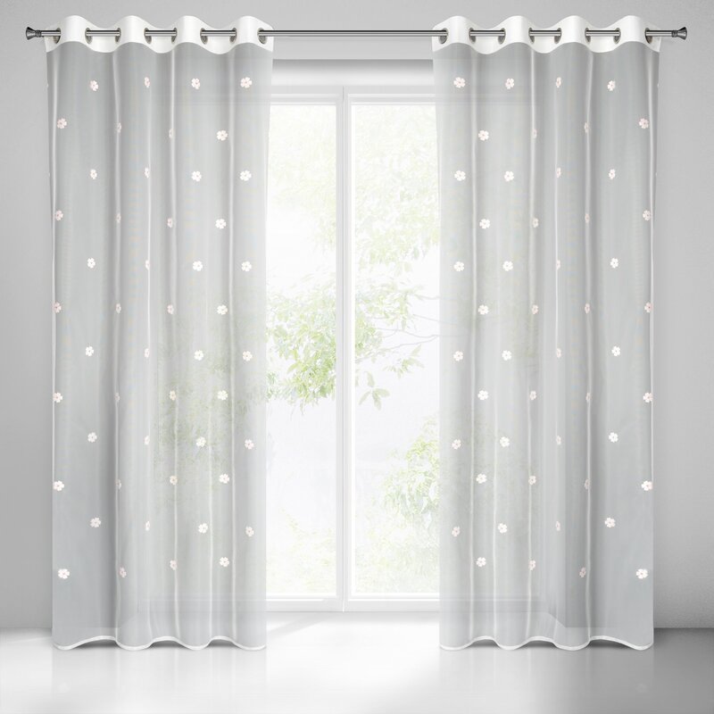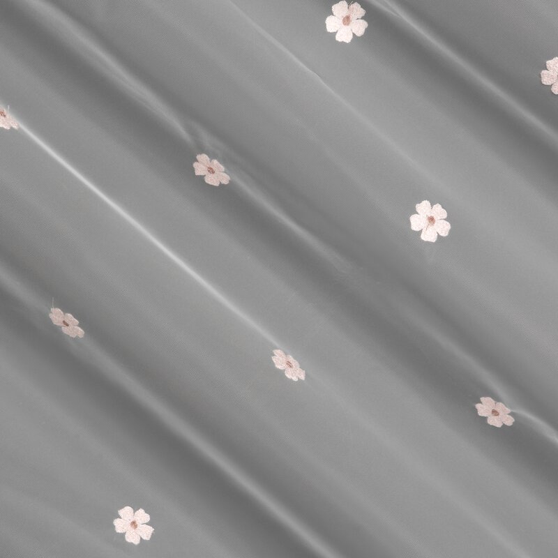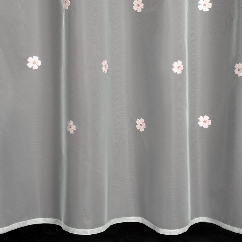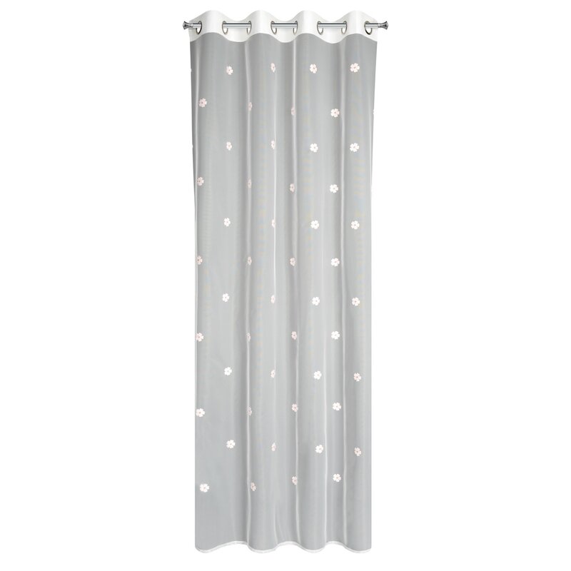 Firana 140×250 Elsa biała z różową aplikacją kwiatów dla dzieci gotowa na przelotkach Eurofirany