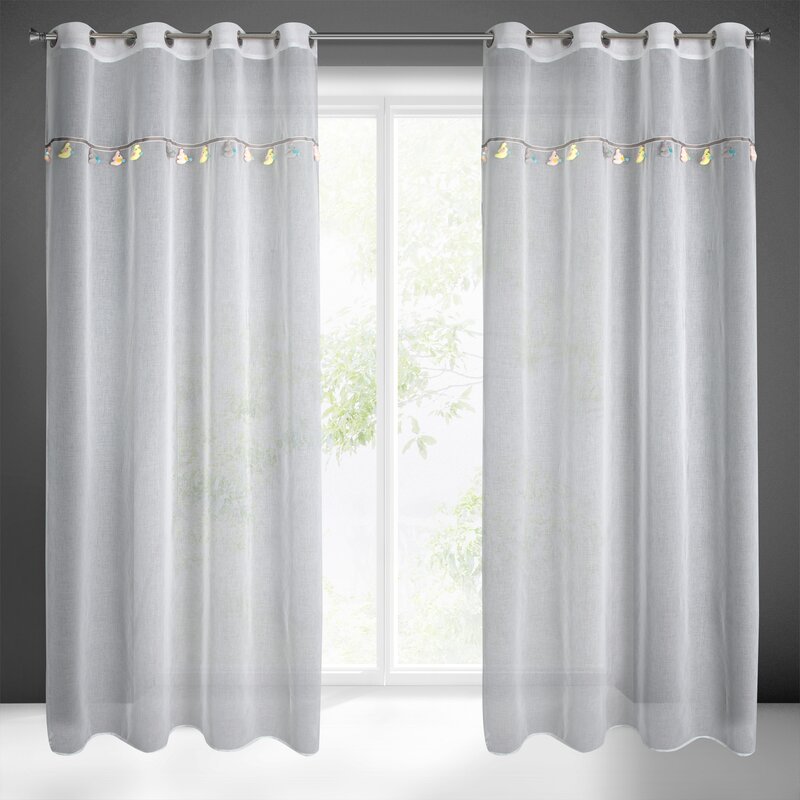 Firana gotowa z wszytą taśmą dekoracyjną z motywem dziecięcym szerokość: 140 cm, długość: 250 cm, kolor: biały, Gramatura: 50 GSM, Skład: 100% poliester
