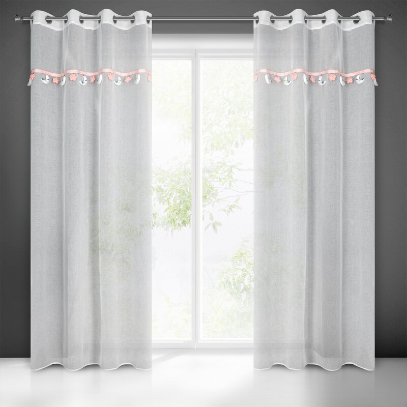 Firana gotowa z wszytą taśmą dekoracyjną z motywem dziecięcym szerokość: 140 cm, długość: 250 cm, kolor: biały, Gramatura: 50 GSM, Skład: 100% poliester