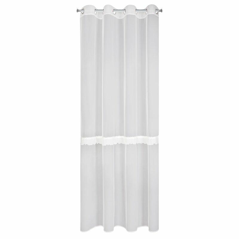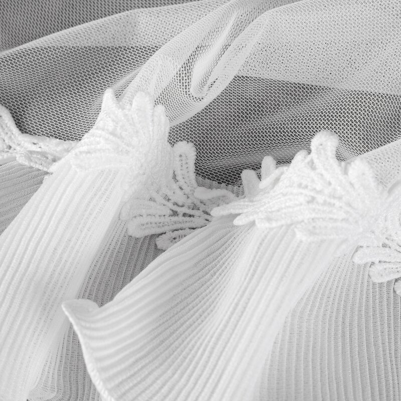 Firana gotowa zdobiona aplikacją szerokość: 140 cm, długość: 260 cm, kolor: biały, Gramatura: 70 GSM, Skład: 100% poliester