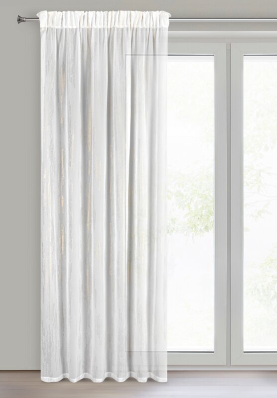 Firana gotowa szyfrowana z błyszczącym nadrukiem, Rozmiar: 140×270 cm, Materiał: 100% poliester, Firana gotowa do zawieszenia, co zapewnia szybkie i wygodne mocowanie. Gramatura: 85g/m2.
