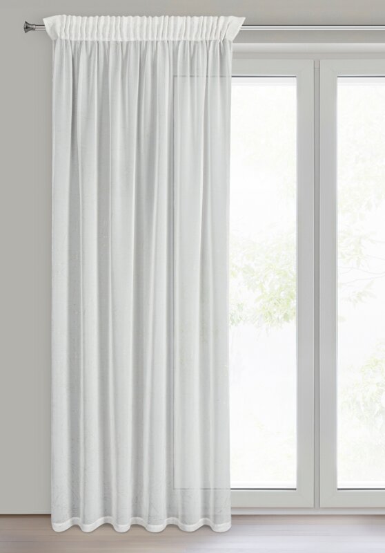 Gotowa do zawieszenia — dzięki wszytej taśmie firana idealnie układa się na karniszu, bez potrzeby dodatkowych przeróbek.