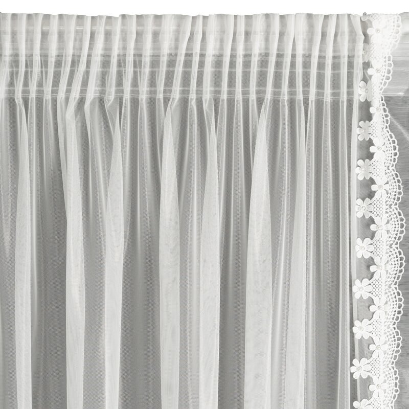 Firana gotowa zdbobiona obszywką 140×270 cm, Rozmiar: 140×270 cm, Materiał: 100% poliester. Firana gotowa do zawieszenia, co zapewnia szybkie i wygodne mocowanie.