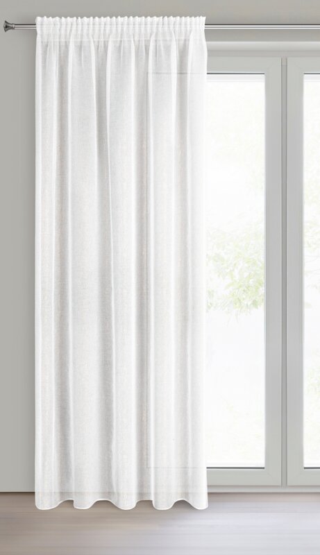 • Łatwy montaż na taśmie Eurofirany – firana jest gotowa do zawieszenia, dzięki czemu zaoszczędzisz czas i unikniesz trudności związanych z aranżacją okna.
