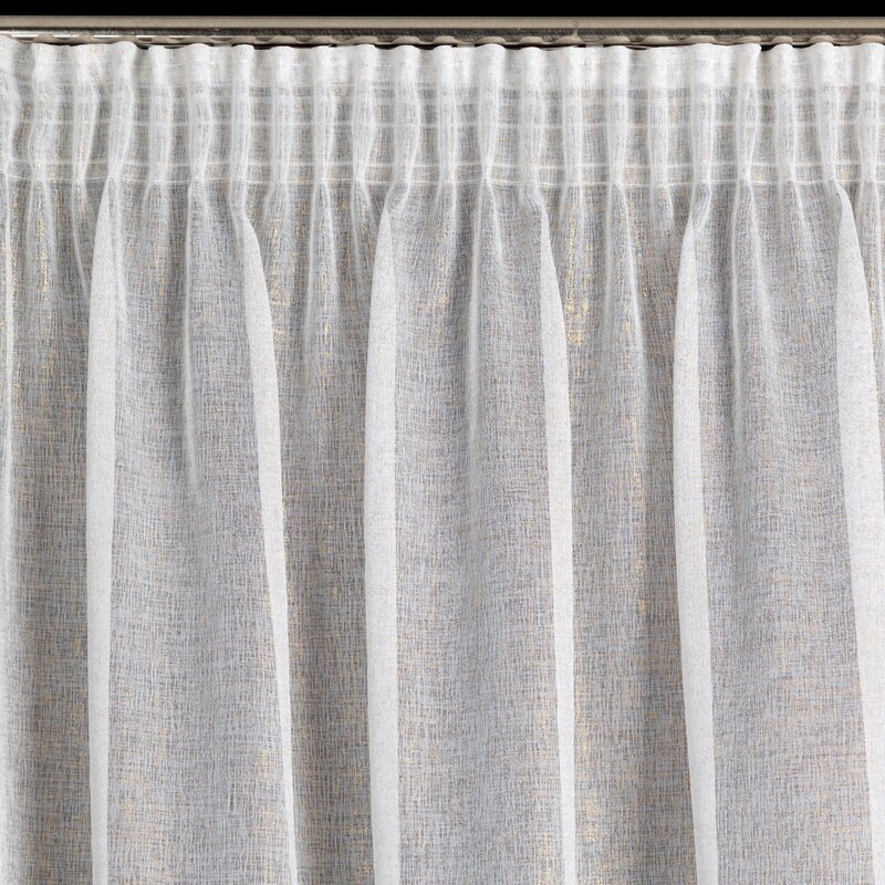 Firana 140×270 cm Lucila z Błyszczącym Nadrukiem na Taśmie Eurofirany, Szczegóły produktu: Wymiary: 140×270 cm, Gramatura: 70 g/m2, Skład: 100% poliester, Sposób zawieszenia: taśma marszcząca.