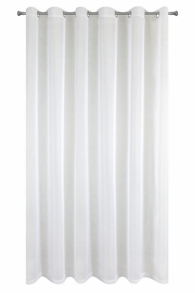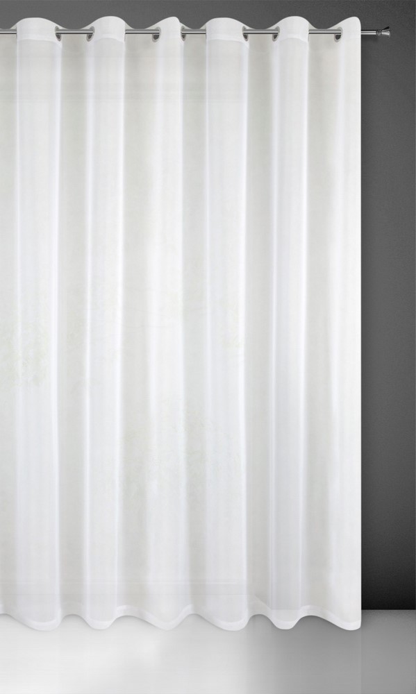 Klasyczna, długa, krótka firana uszyta z gładkiego, miękkiego woalu. Subtelna tkanina łatwo się pracuje a po upięciu układa się w miekkie fale. szerokość: 300 cm, długość: 250 cm, kolor: biały, Gramatura: 50 GSM, Skład: 100% poliester