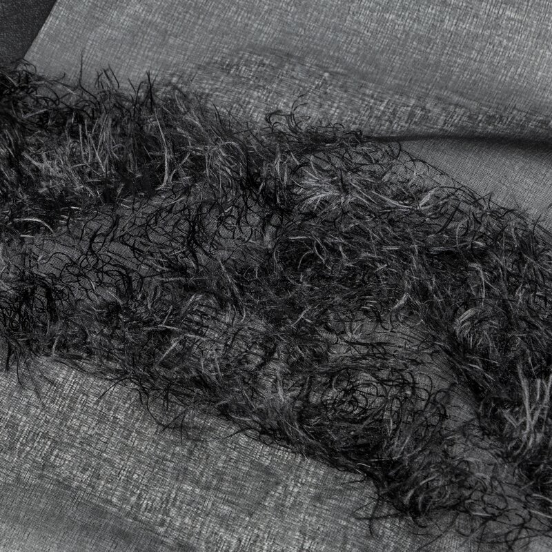 Czarna firana z delikatną aplikacją w formie pasów to połączenie klasyki i nowoczesności. Taki dodatek do wnętrza nada mu wyjątkowego charakteru i wprowadzi elegancki klimat.
