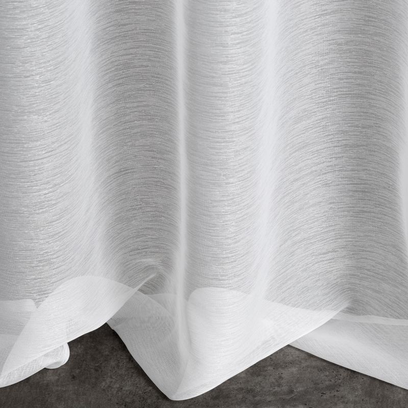 Delikatna firana uszyta z tkaniny o strukturze drobnego deszczyku doskonale przepuszcza światło. Łatwa w prasowaniu i praniu dekoracja. Wzór poziomy. szerokość: 140 cm, długość: 250 cm, kolor: biały, Gramatura: 50 GSM, Skład: 100% poliester