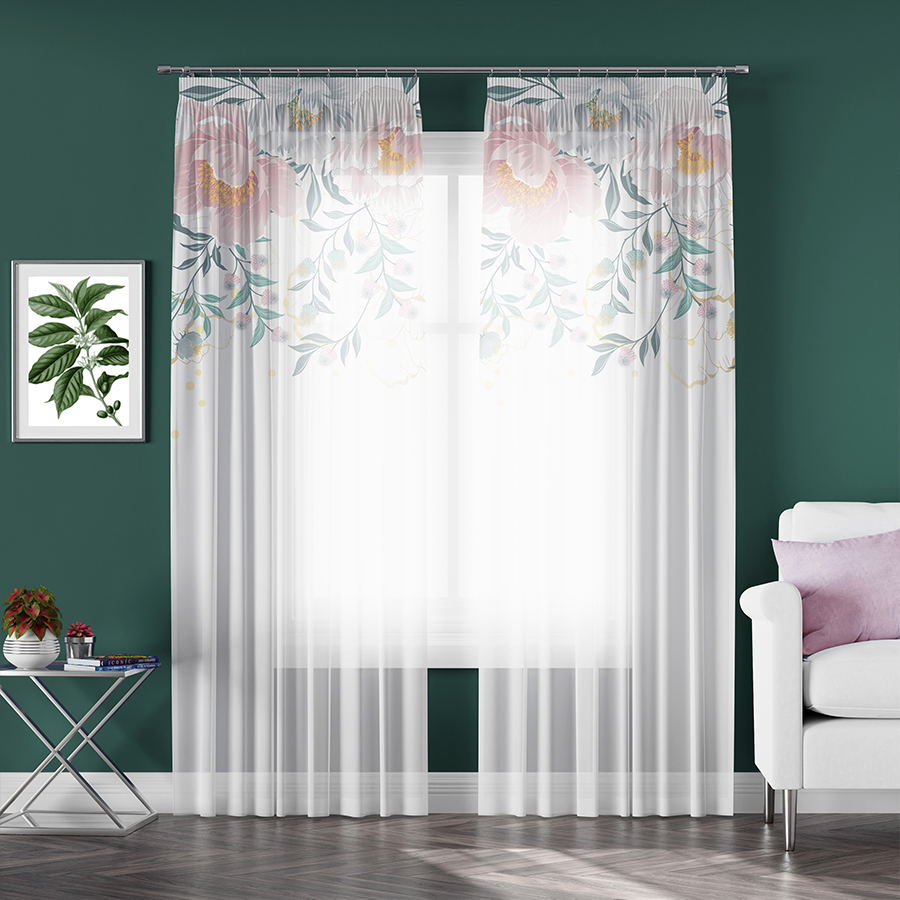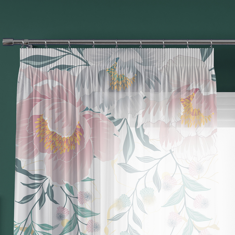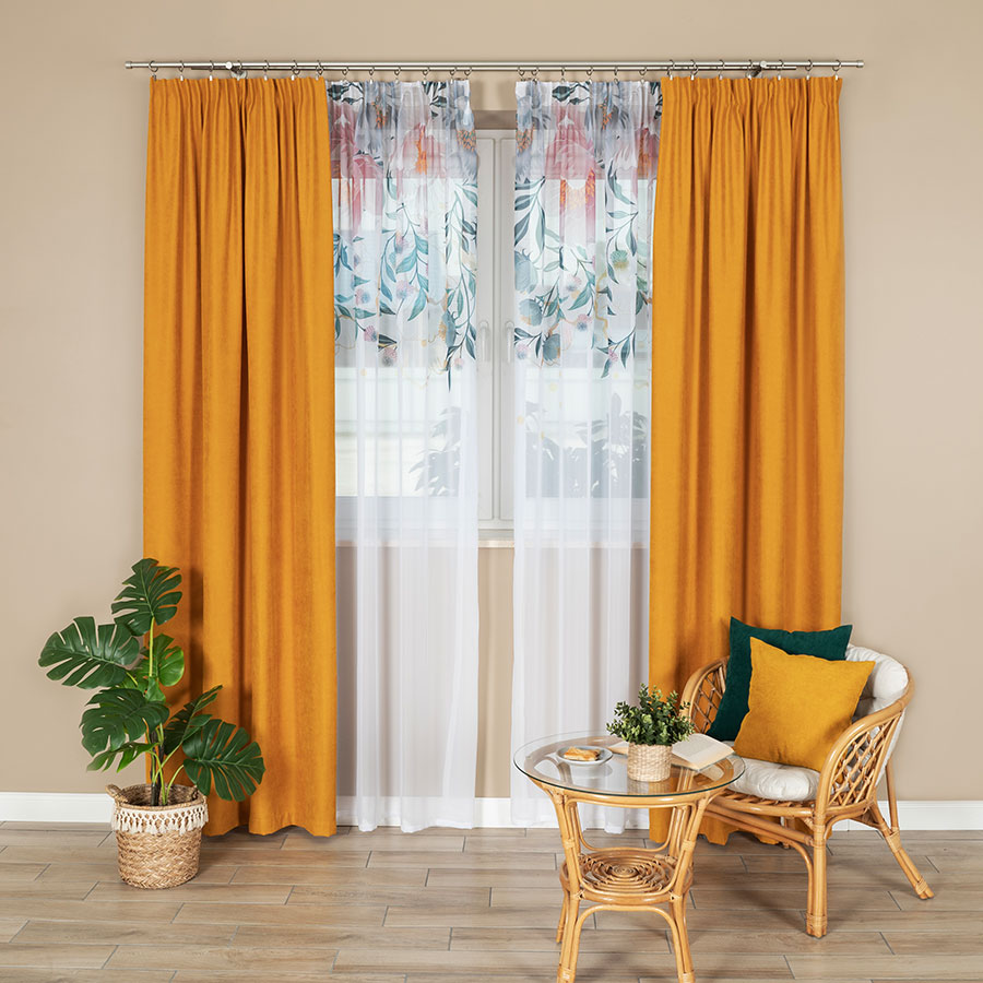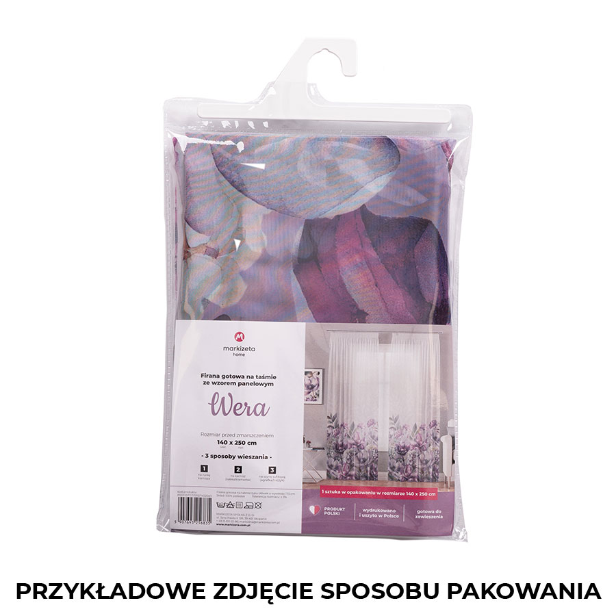 Firana gotowa Woal na taśmie 140x250cm. Do uszycia zasłony wykorzystana została taśma TASMAM/T22/P20/007500/1 Taśma transparentna ołówek NA KARNISZ, Gramatura: 48g/m2