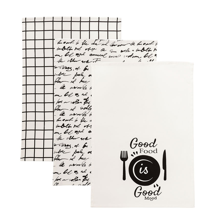 GOOD FOOD GOOD MOOD – Komplet 3 ścierek kuchennych 40×60 cm