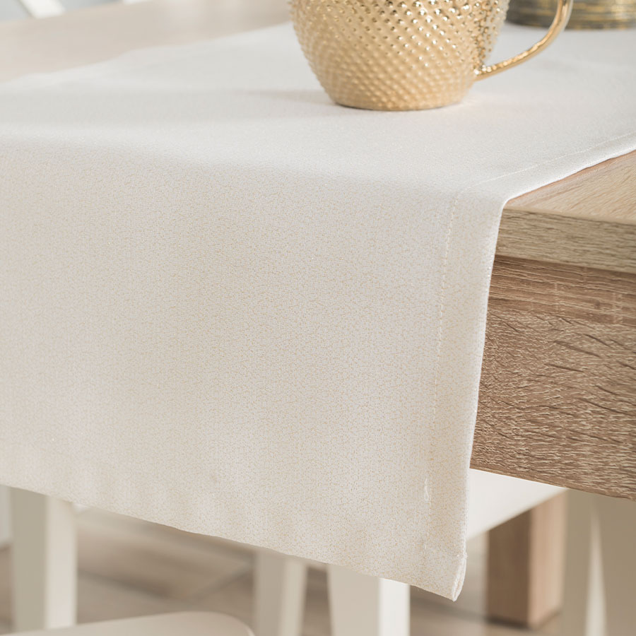 Dodaj swojej jadalni lub salonowi odrobinę elegancji dzięki bieżnikowi HARPER. Wykonany w złotym kolorze z subtelnym połyskiem lurexu, doskonale podkreśli wyjątkowy charakter spotkań przy stole – zarówno na co dzień, jak i podczas uroczystych okazji.