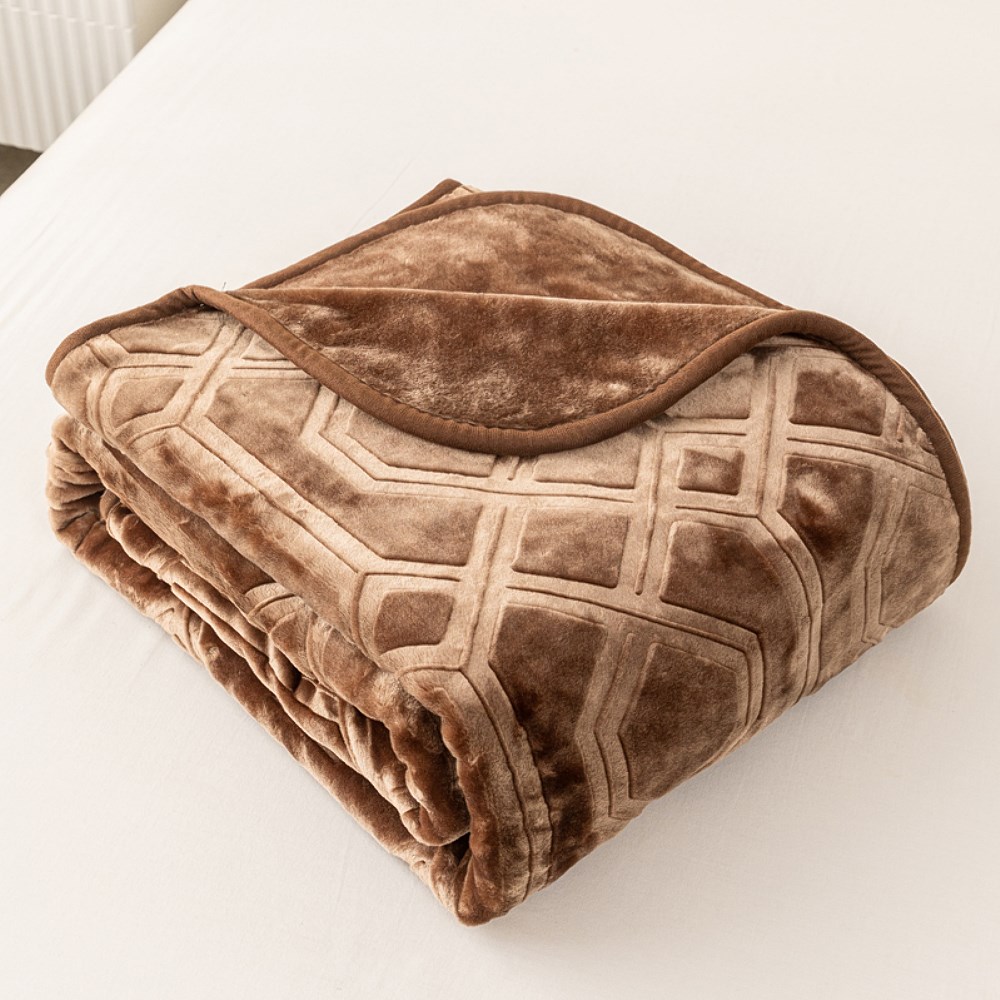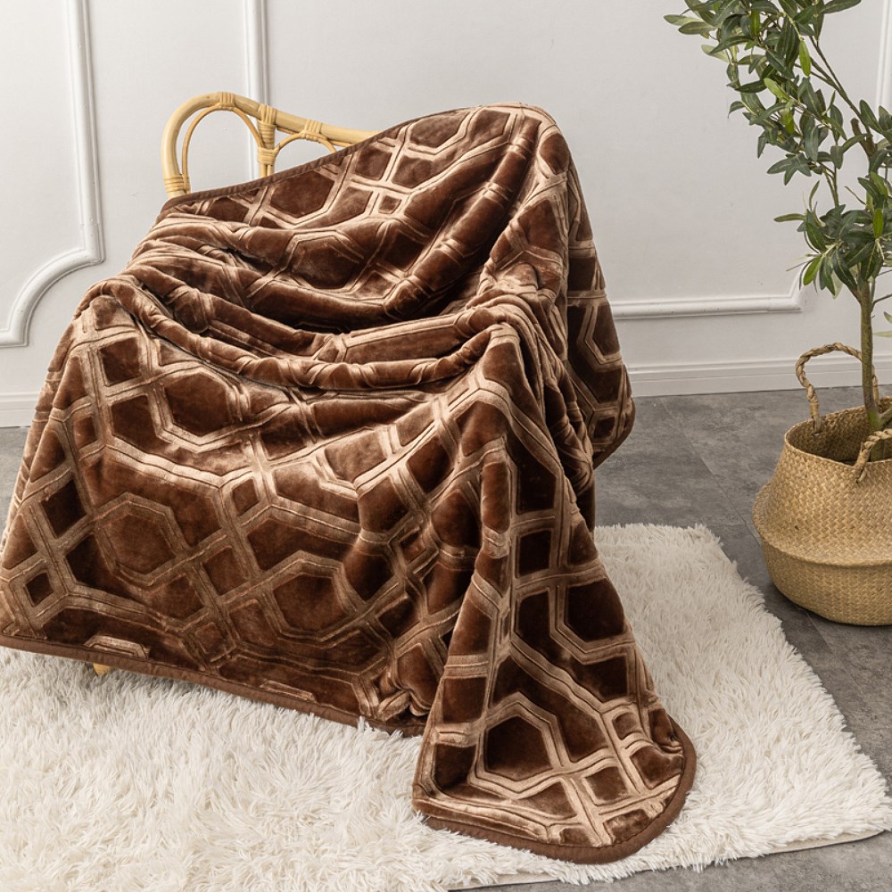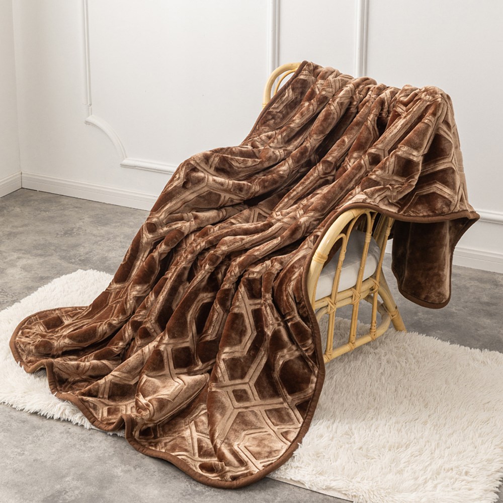 Koc akrylowy Vito 160×200 cm – czekoladowy, tłoczony geometryczny wzór