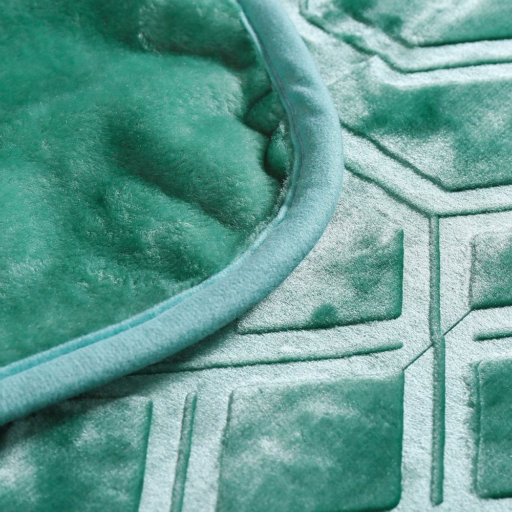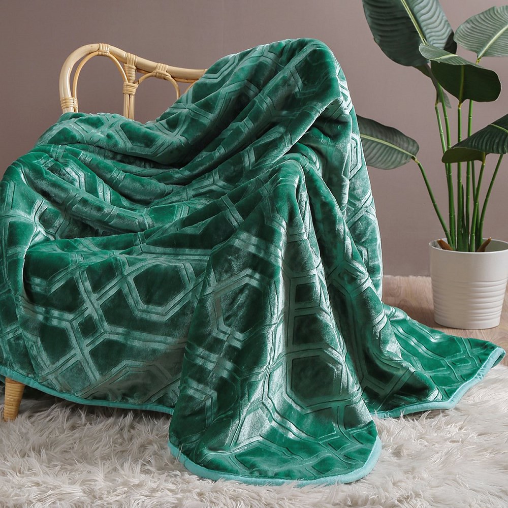 Koc akrylowy 160×200 Vito zielony butelkowy tłoczony geometryczny narzuta dekoracyjna