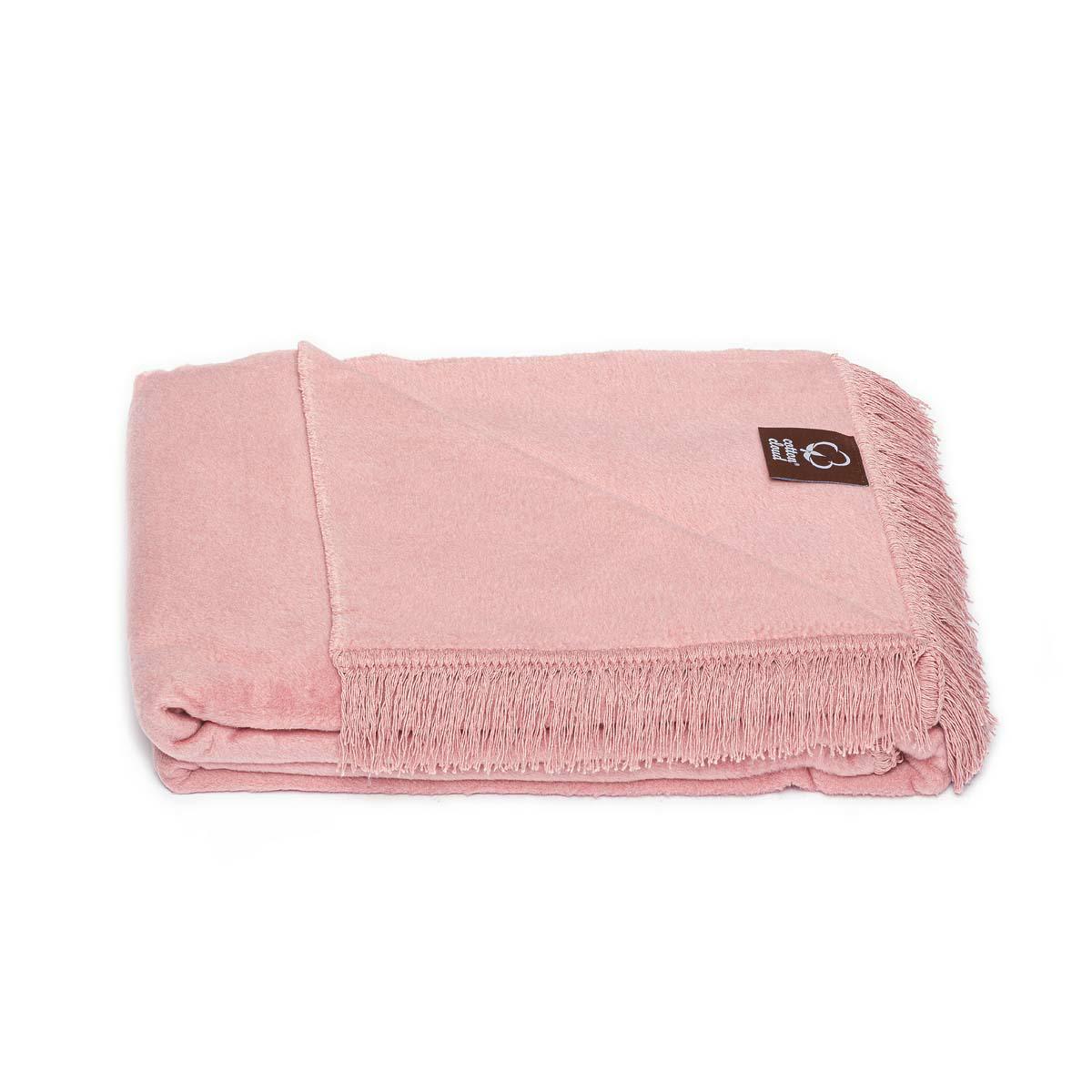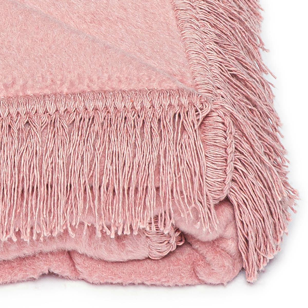 Koc bawełniany akrylowy 150×200 0293/44 różowy pudrowy narzuta pled wykończony frędzalmi