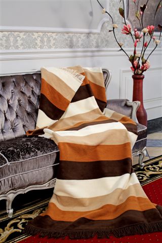 Beżowo-czekoladowe pasy tworzą ponadczasową kombinację kolorów, która pasuje do klasycznych i nowoczesnych wnętrz. Koc nie tylko ogrzewa, ale także pełni funkcję dekoracyjną – nadając przestrzeni przytulny i elegancki charakter.