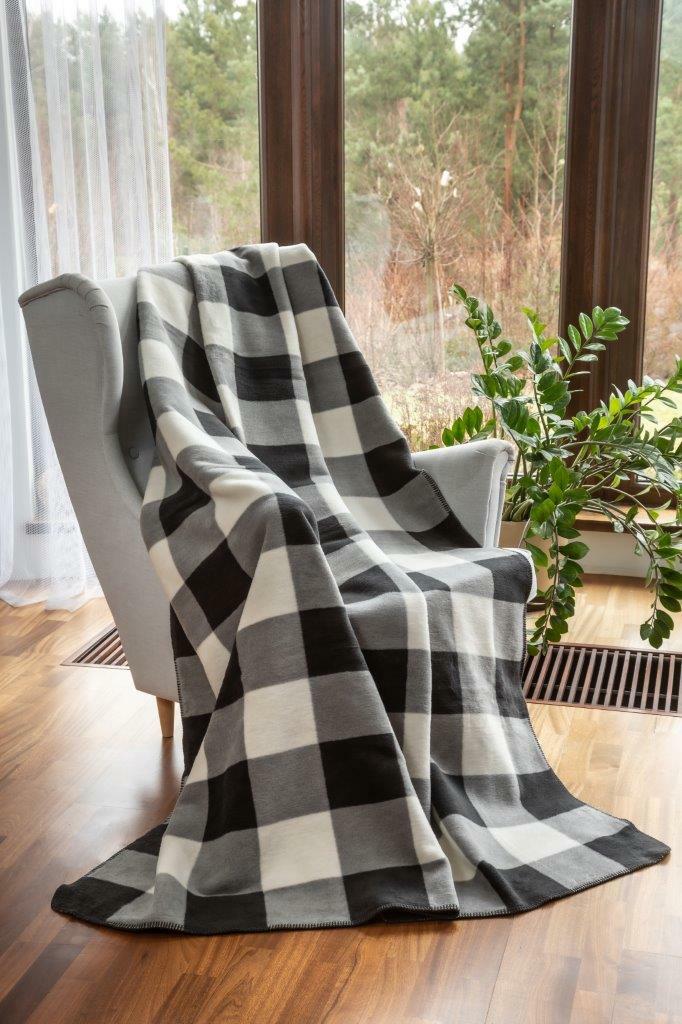 Koc bawełniany akrylowy 150×200 1384/1 grafitowy biały kratka narzuta pled
