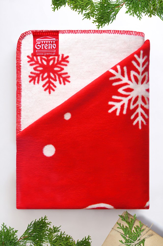 Koc bawełniany akrylowy 150×200 świąteczny Skrzat czerwony biały Glamour Greno