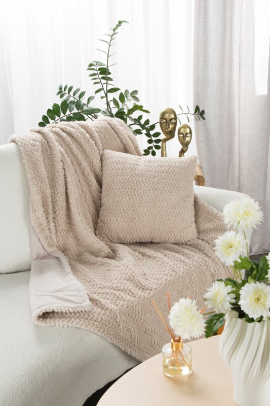 Koc narzuta Laris beżowy 130×170 cm to nie tylko praktyczne okrycie, ale również piękna dekoracja. Sprawdzi się zarówno w salonie, jak i w sypialni. Dodaje przytulności i podkreśla charakter wnętrza. Dzięki neutralnej kolorystyce łatwo zestawić go z innymi dodatkami.