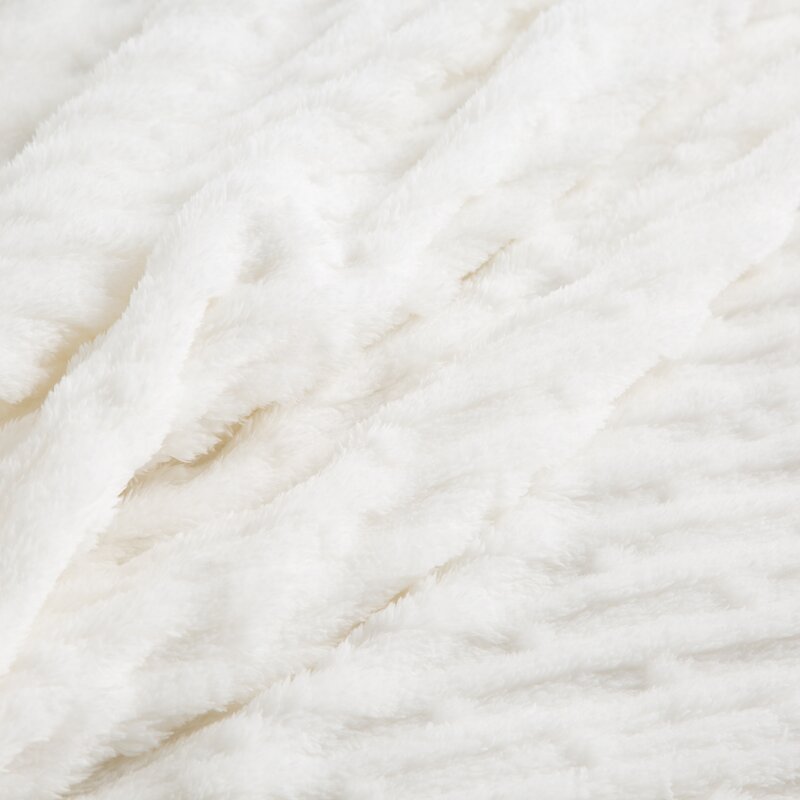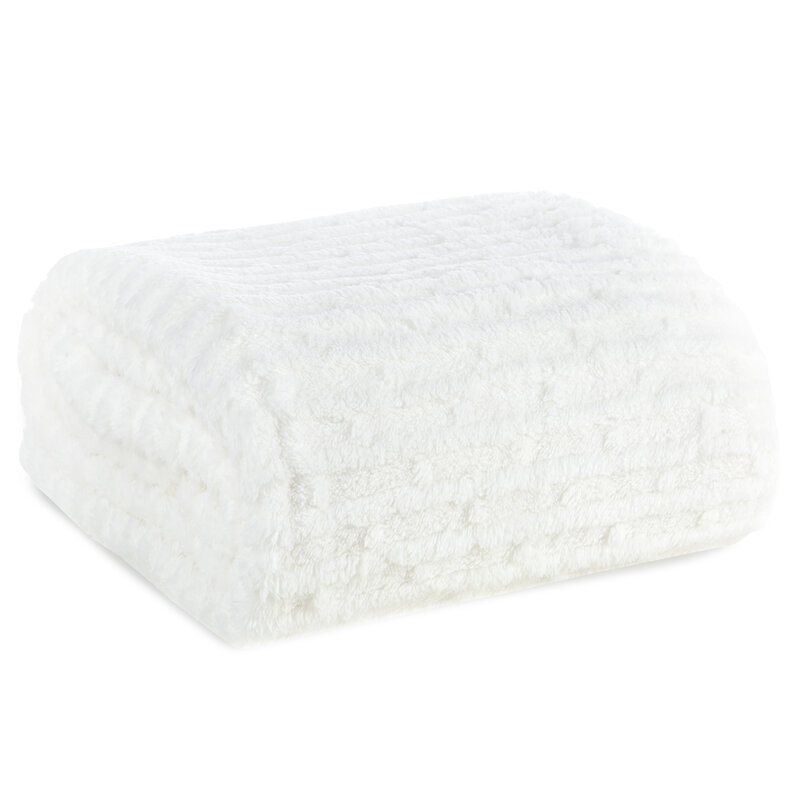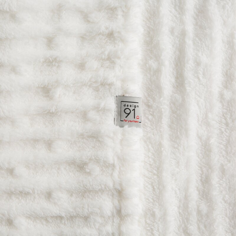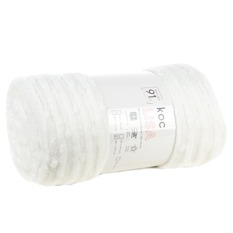 Koc narzuta z mikrofibry 130×170 biały miękki Lisa z wytłaczanym wzorem pasów D91