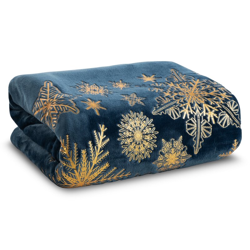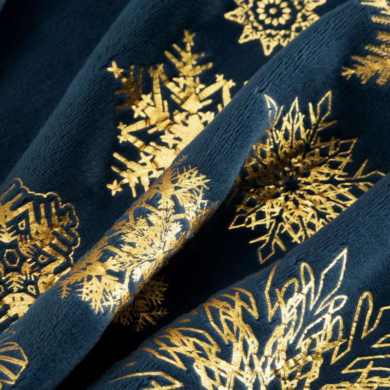 Koc świąteczny 150×200 Joy 3 granatowy złoty gwiazdki narzuta Eurofirany