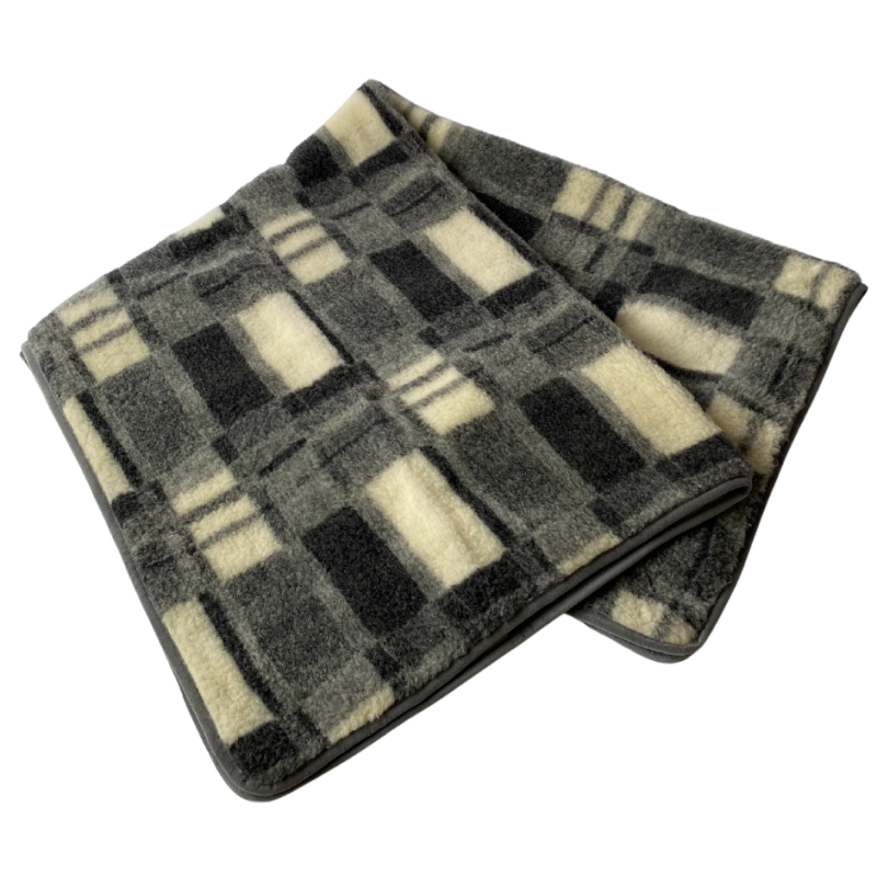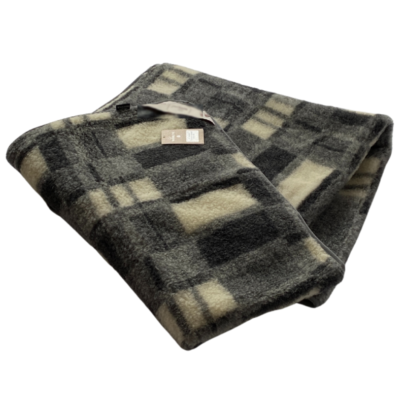 Koc wełniany merynos 220×200 Belar krata grafitowy Wyroby rehabilitacyjne i rozgrzewające
