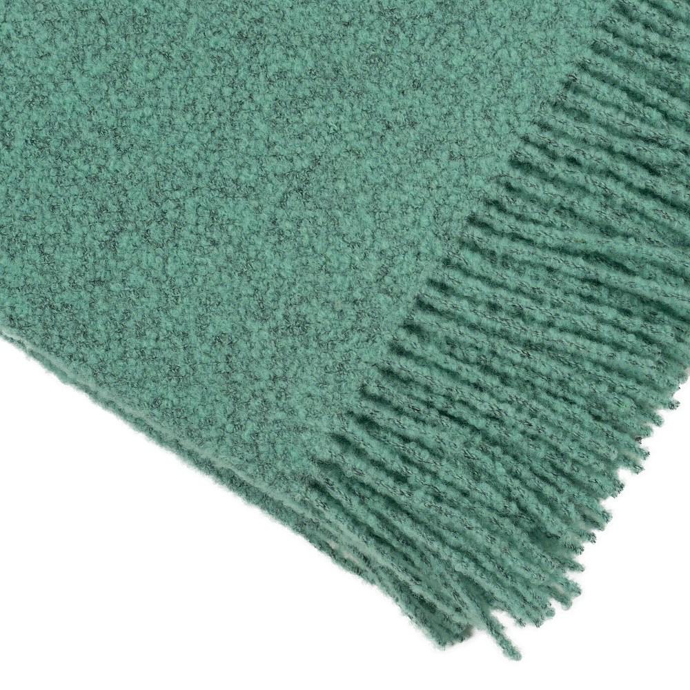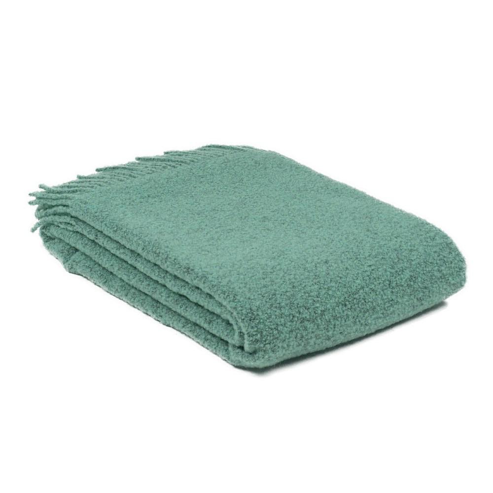 Koc wełniany merynos Bukle 140×200 miętowy z frędzlami
