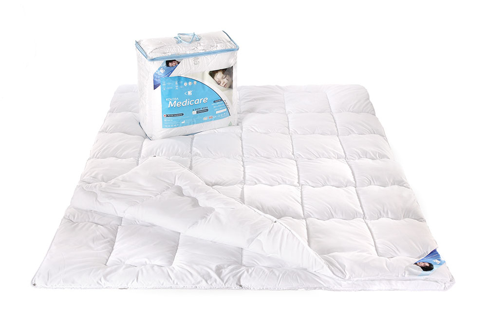 Kołdra 200×220 Medicare, Kolekcja: Medicare, Rozmiar: 200×220 cm. Sezonowość: całoroczna, Kolor: biały, Poszycie: 100% mikrofibra. Wypełnienie kołder: 100% poliester silikonowany Hollow®, Gramatura wypełnienia: 800g + 1100g, Tekstylia Godne Zaufania zbadane na substancje szkodliwe według OEKO-TEX® Standard 100, – Polish Product, – Oznakowanie CE. Opakowanie: elegancka torba z rączką