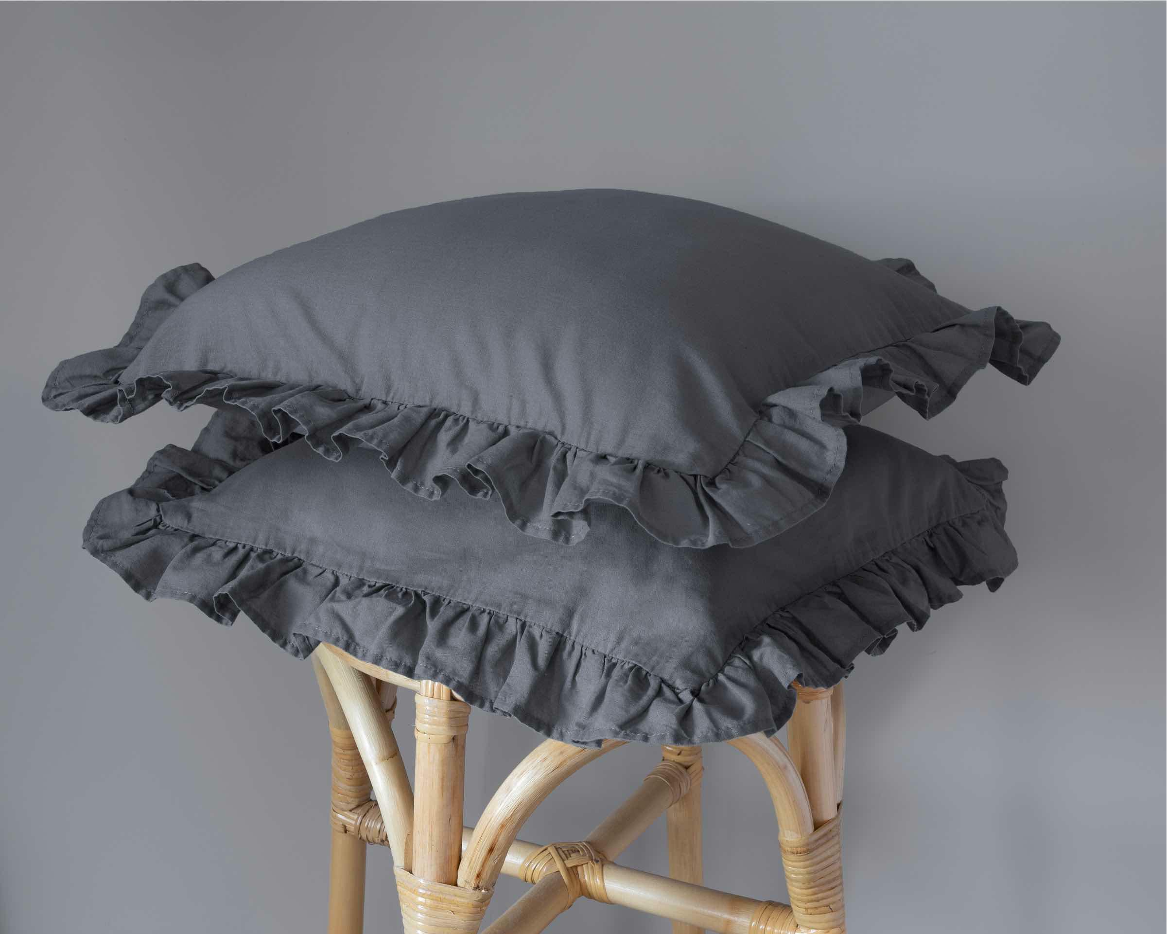 Komplet poszewek bawełnianych 2 szt 40×40 grafitowa jednobarwna z falbanką Pure 23