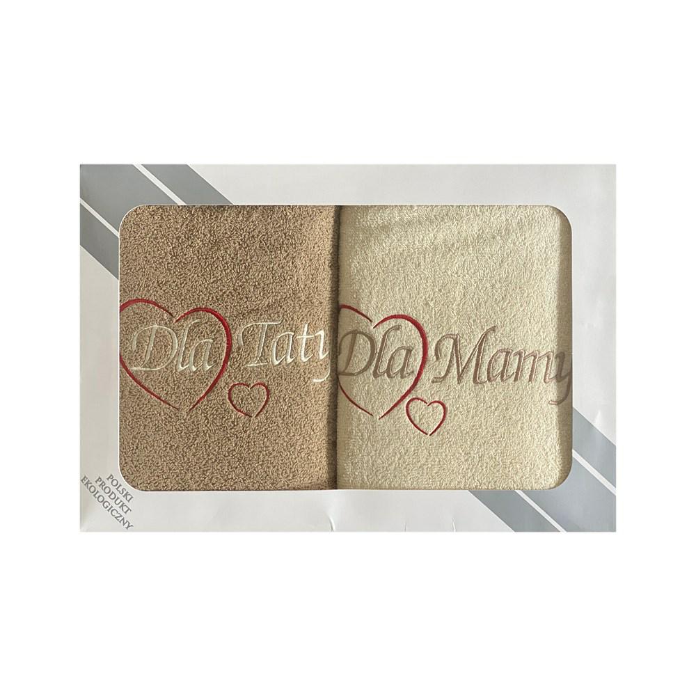 Komplet ręczników w pudełku 2 szt 50×100 Dla Mamy Dla Taty kremowy beżowy serduszka