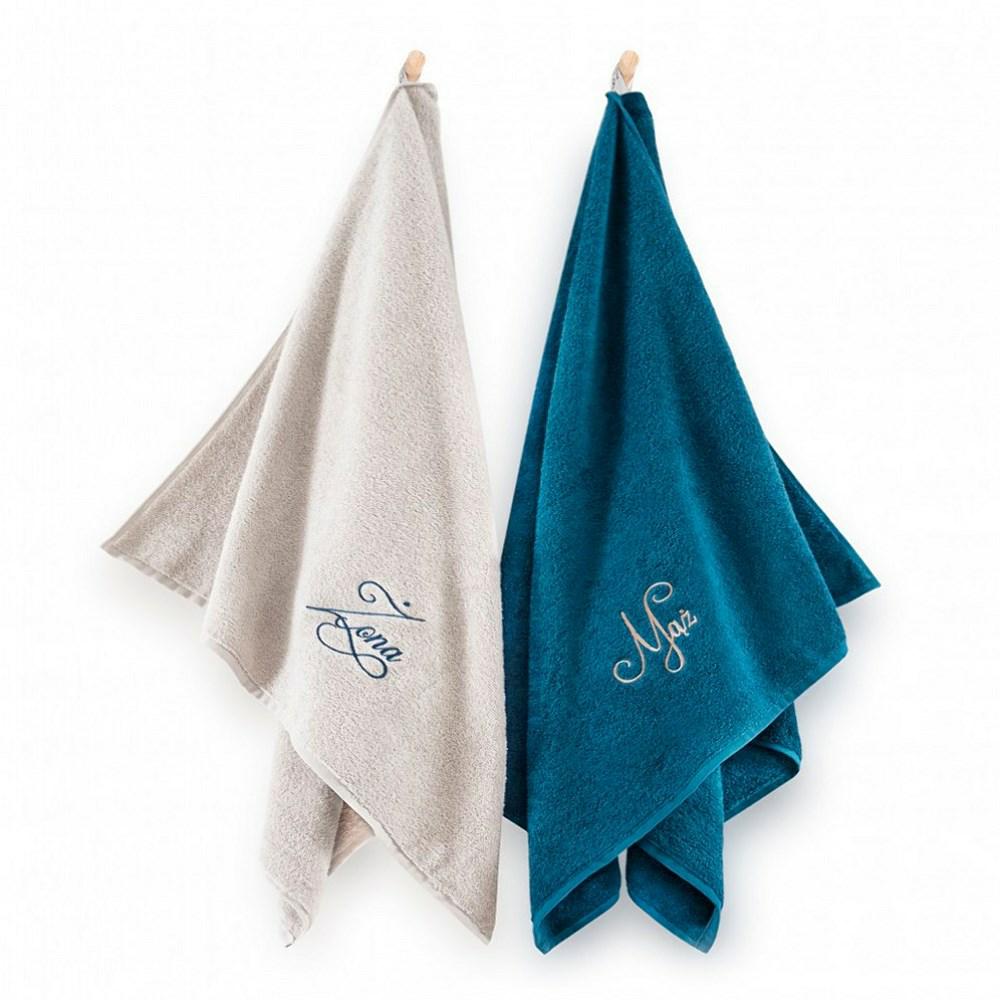 Komplet ręczników w pudełku 2 szt Mąż Żona beżowy turkusowy 70×130 8462/5712 na prezent Zwoltex