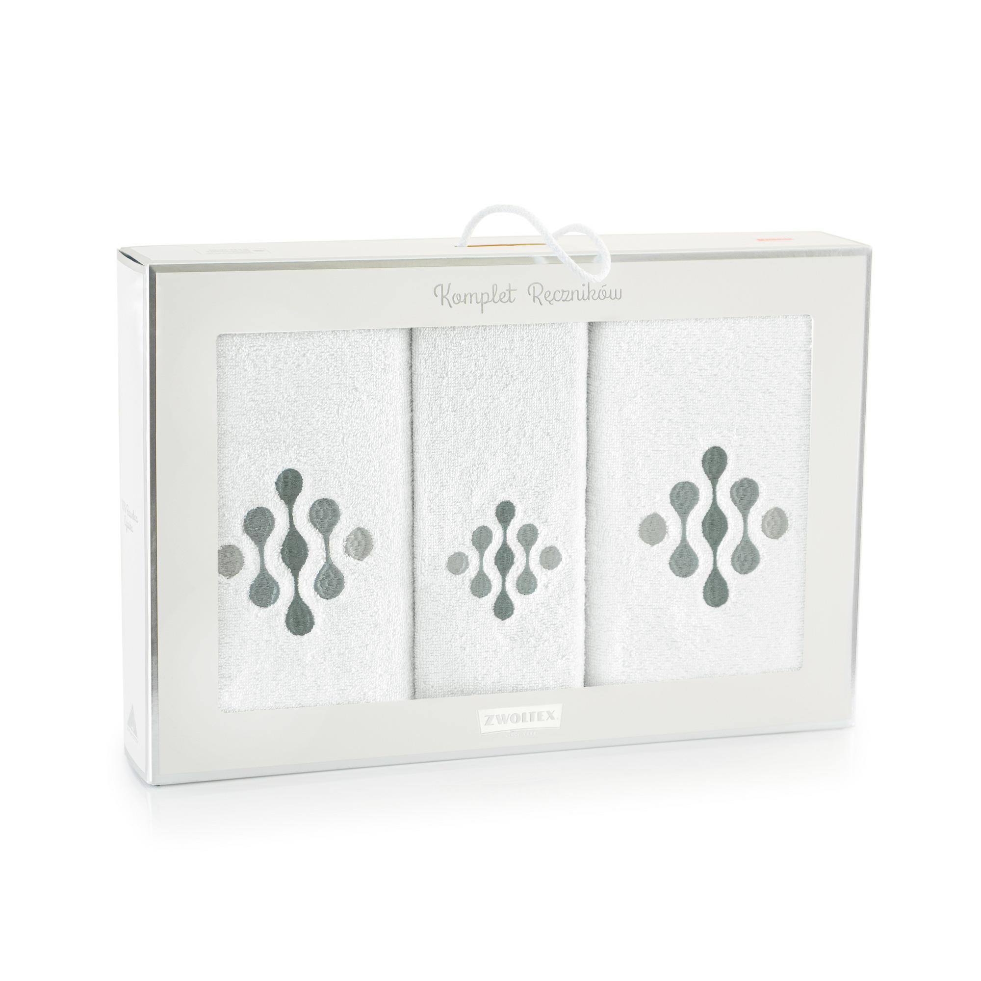 Komplet ręczników w pudełku 3 szt Krople Biały-k11-500 ręczniki 30×50 50×100 70×140 Zwoltex
