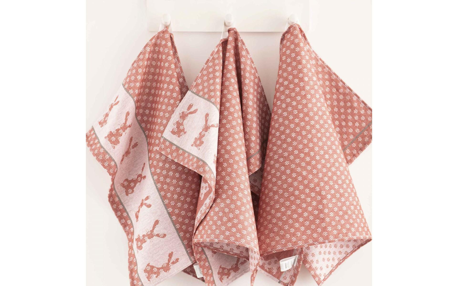 Komplet ścierek kuchennych Szarak 3 szt. rudy w drewnianym pudełku Zwoltex