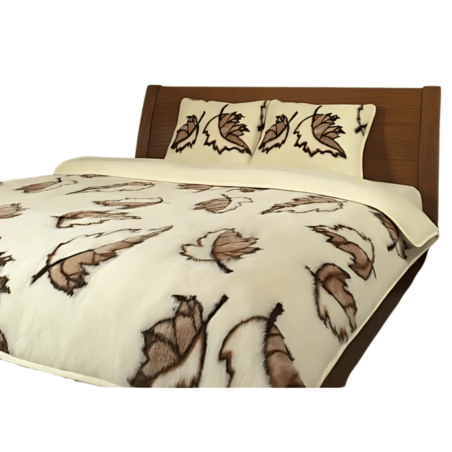 Komplet wełniany – kołdra 220×200 – 2 poduszki 50×60 – podkład prześcieradło wełniane – Liść Klonu – kremowy brązowy – Pościelowe wyroby rozgrzewające