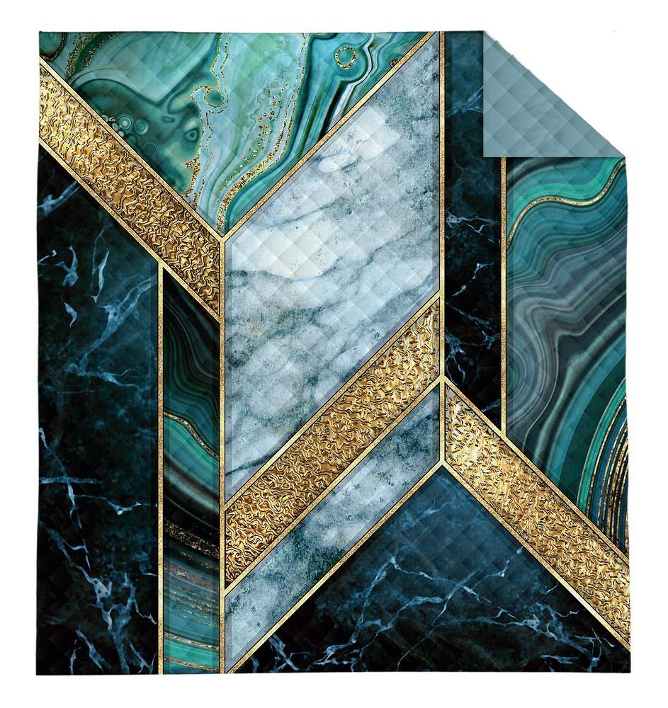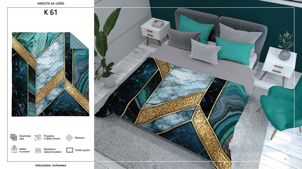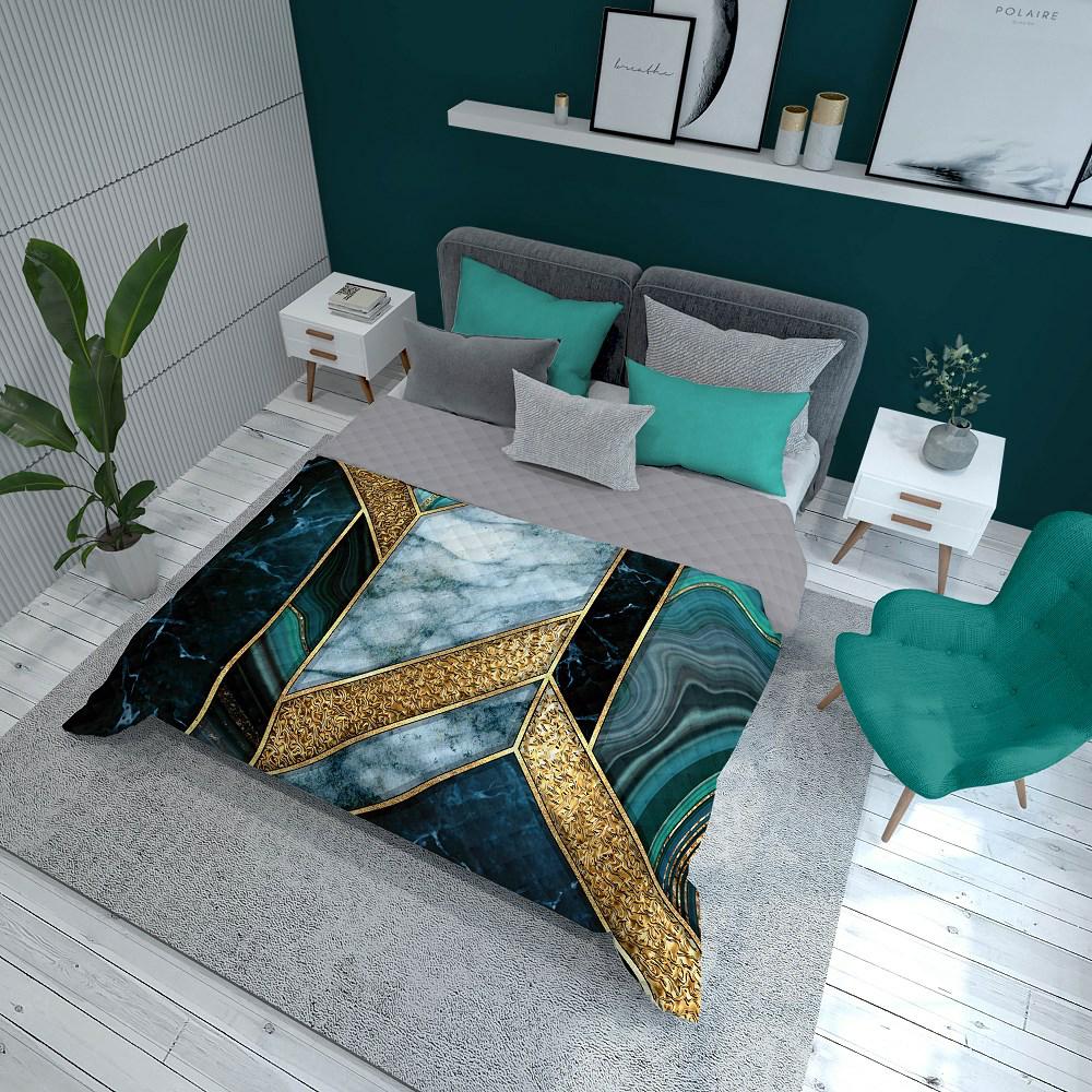 Narzuta dekoracyjna 170×210 turkusowa złota geometria K_61 112 Bedspread