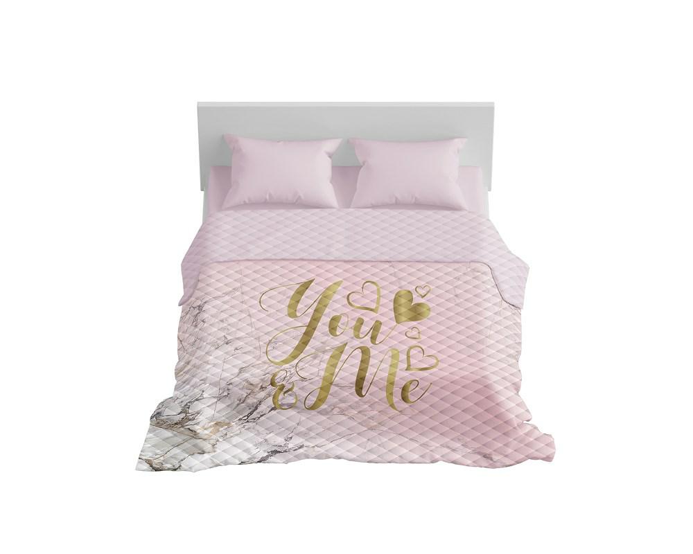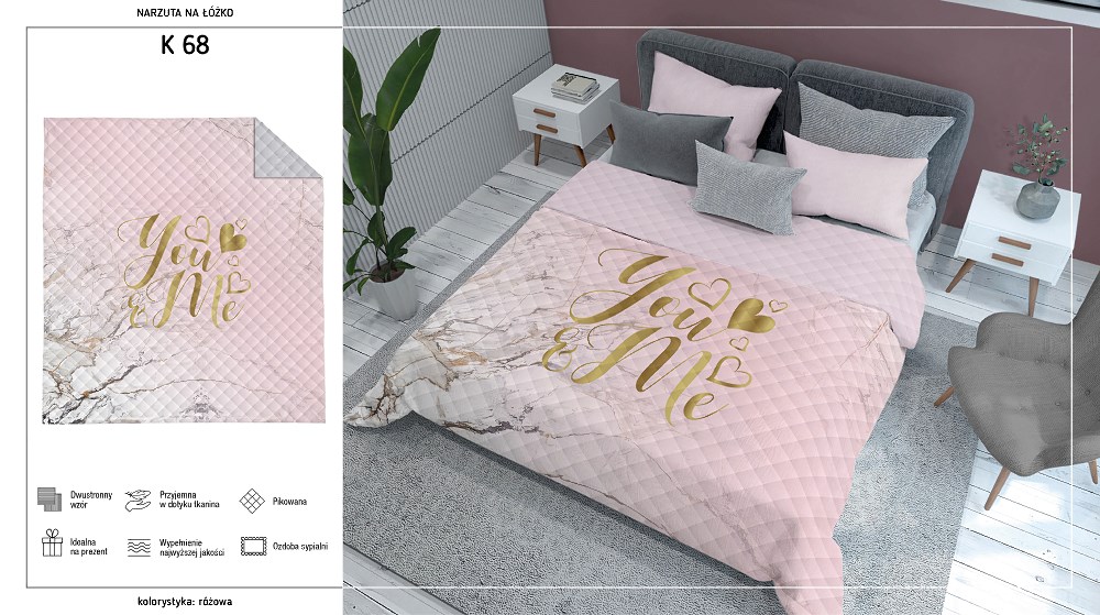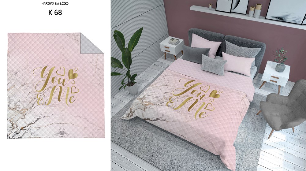 Narzuta dekoracyjna 220×240 You&Me różowa pudrowa złota K_68 112 Bedspread