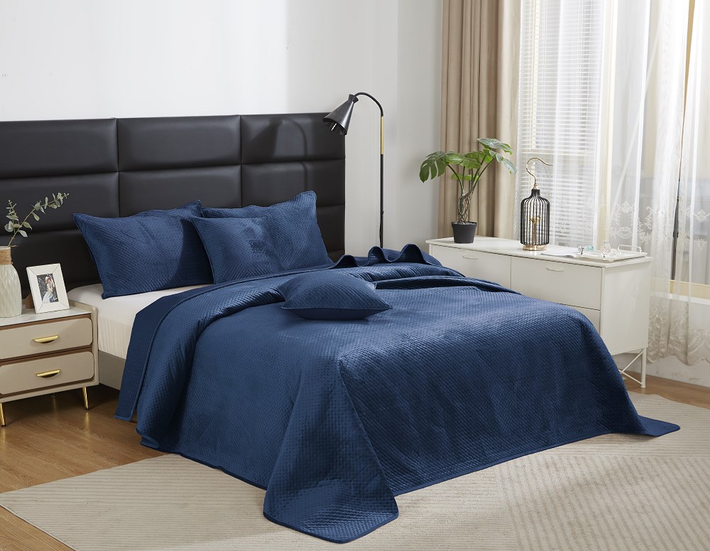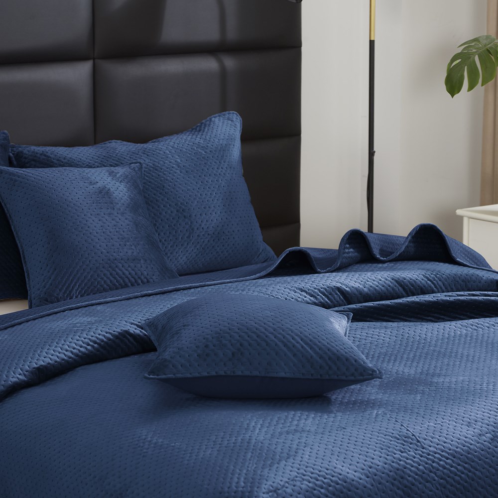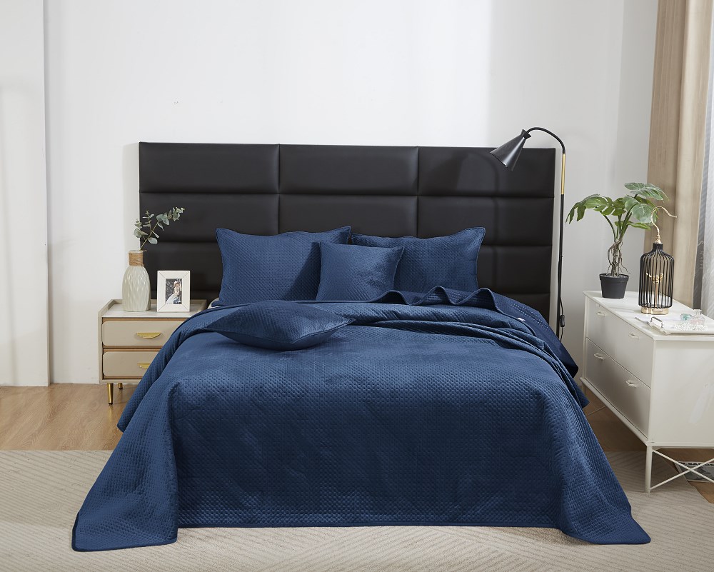 Narzuta welurowa 200×220 Maya granatowa geometryczna krzyżyki I24