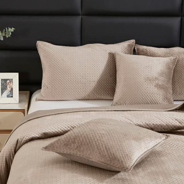 ilość Narzuta welurowa 240x260 Maya beżowa geometryczna krzyżyki I24