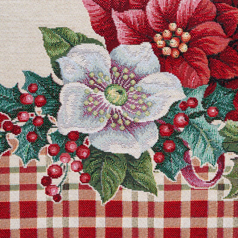 Obrus świąteczny 140×180 kremowy czerwony kwiaty gobelinowy 1273 Eurofirany
