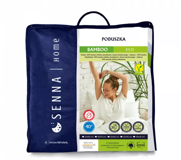 Poduszka antyalergiczna 40×45 Bamboo Eco 300g, Rozmiar: 40×45 cm, Tkanina: 50% Bambus (wiskoza) – 50% bawełna, Wypełnienie: 100% granulat poliestrowy