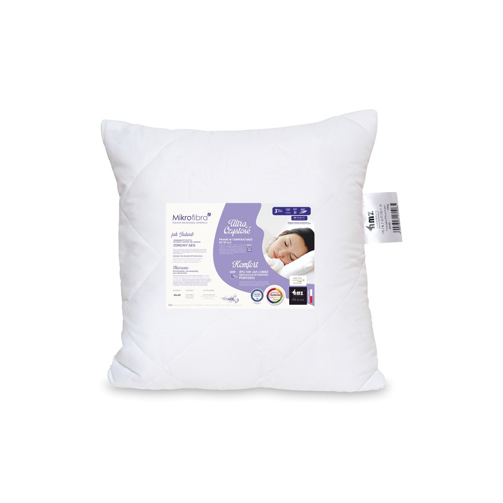 Kolekcja ZDROWY SEN, Wypełnienie poduszek – AMZ dream-ball, Rodzaj poduszki: pikowana z zamkiem, Rozmiar poduszki: 40×40, Gramatura wypełnienia: 200g, Tkanina: mikrofibra francuska, 100% poliester