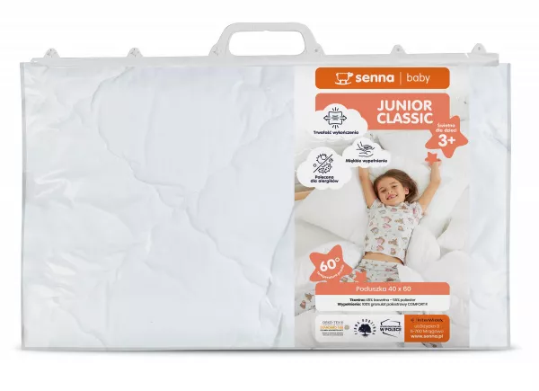 Poduszka Junior Classic jest niezwykle łatwa w pielęgnacji – można ją prać w pralce, zachowując świeżość i czystość bez wysiłku. Nawet po wielu praniach nie traci swoich właściwości ani kształtu, co czyni ją inwestycją na długi czas.