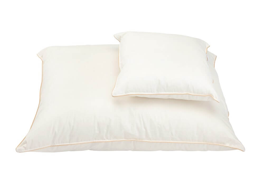 Tkanina użyta do pokrycia poduszek z linii COTTON INTEL to inletowa w 100% tkanina bawełniana. Rodzaje poduszek: jednokomorowe wykończone bizą, Rozmiar poduszki: 40×40, Dostępne kolory: kremowy, Tkanina: 100% bawełna, Wypełnienie poduszek: włókno typu Hollow wysokosprężyste, silikonowane, spiralnie skręcone – w postaci puchu syntetycznego, Certyfikaty: Oeko-Tex