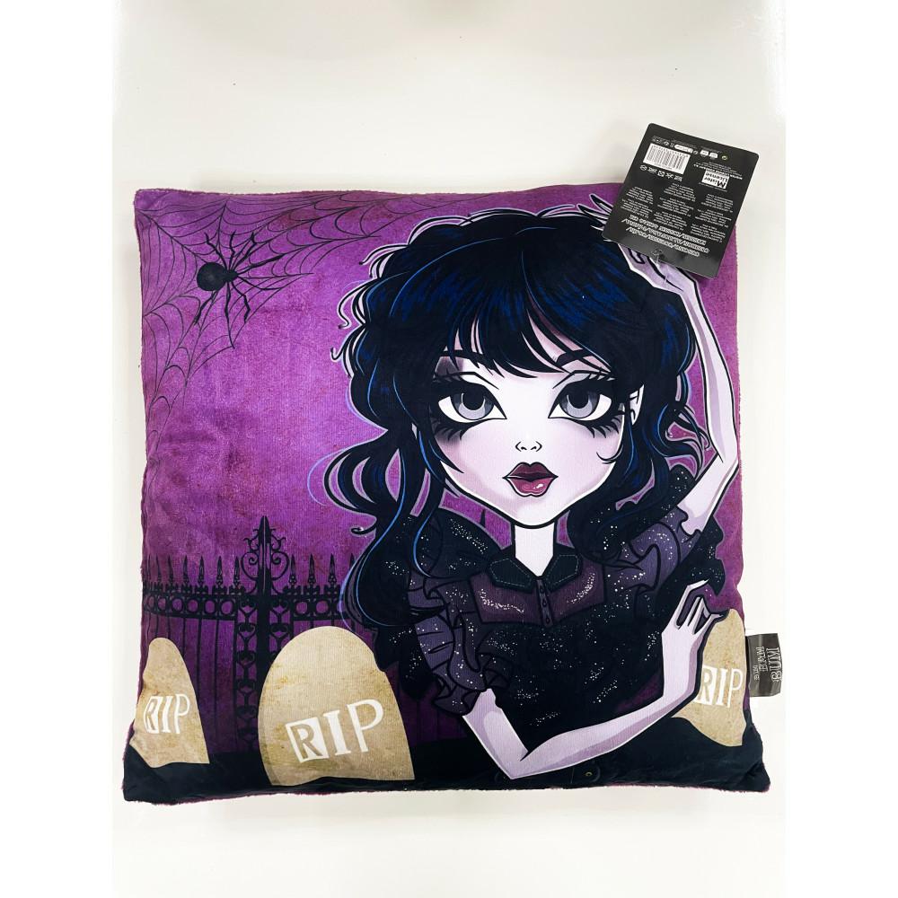 🎯 Poduszka dziecięca 40×40 Wednesday fioletowa S24 – Komfort i styl dla małych fanów przygód!