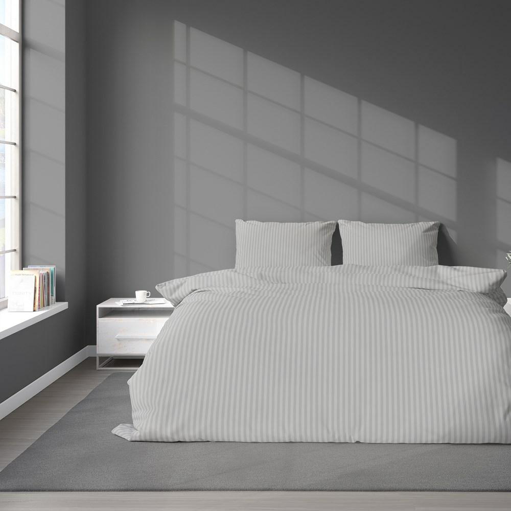 Pościel adamaszkowa 140×200 szara jasna jednobarwna paski 1 cm Pure – elegancja i komfort w Twojej sypialni