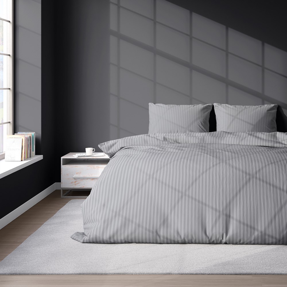 Pościel utrzymana jest w klasycznym, jednolitym szarym kolorze, który z łatwością dopasujesz do każdej aranżacji wnętrza. Wzór w 1-centymetrowe paski dodaje elegancji i lekkości.