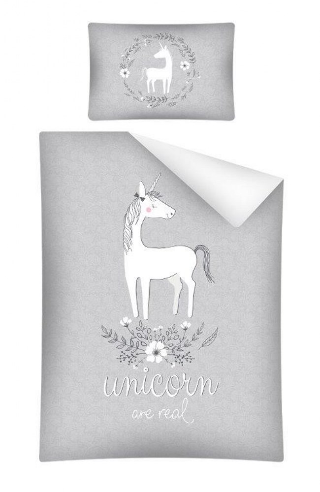 Pościel bambusowa 90×120 Jednorożec kucyk szara do łóżeczka