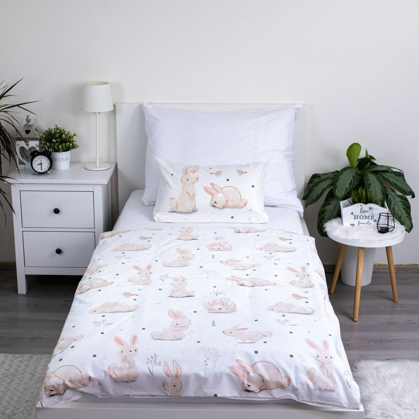 Pościel bawełniana 100×135 Króliczki biała beżowa poszewka 40×60 August