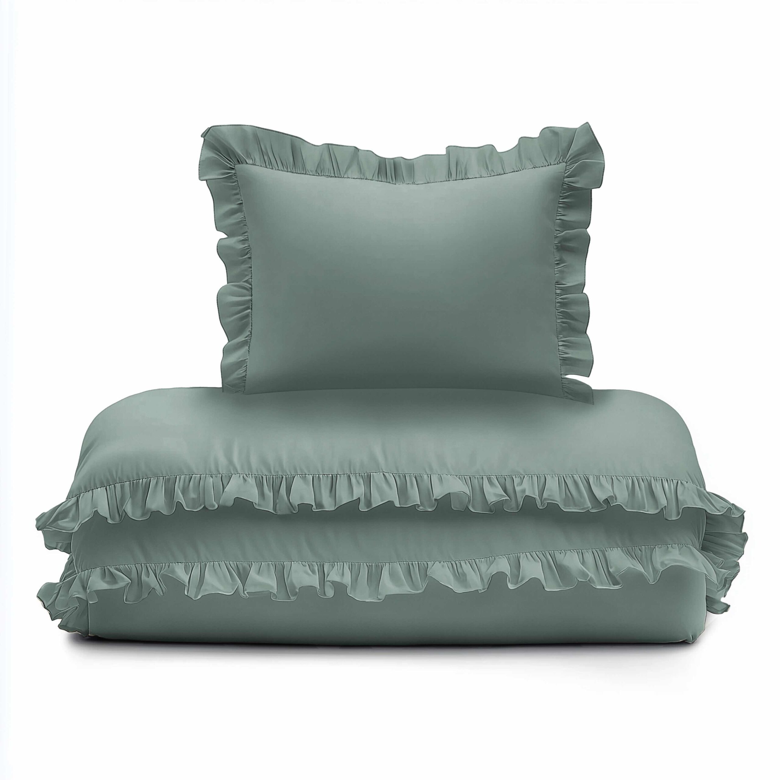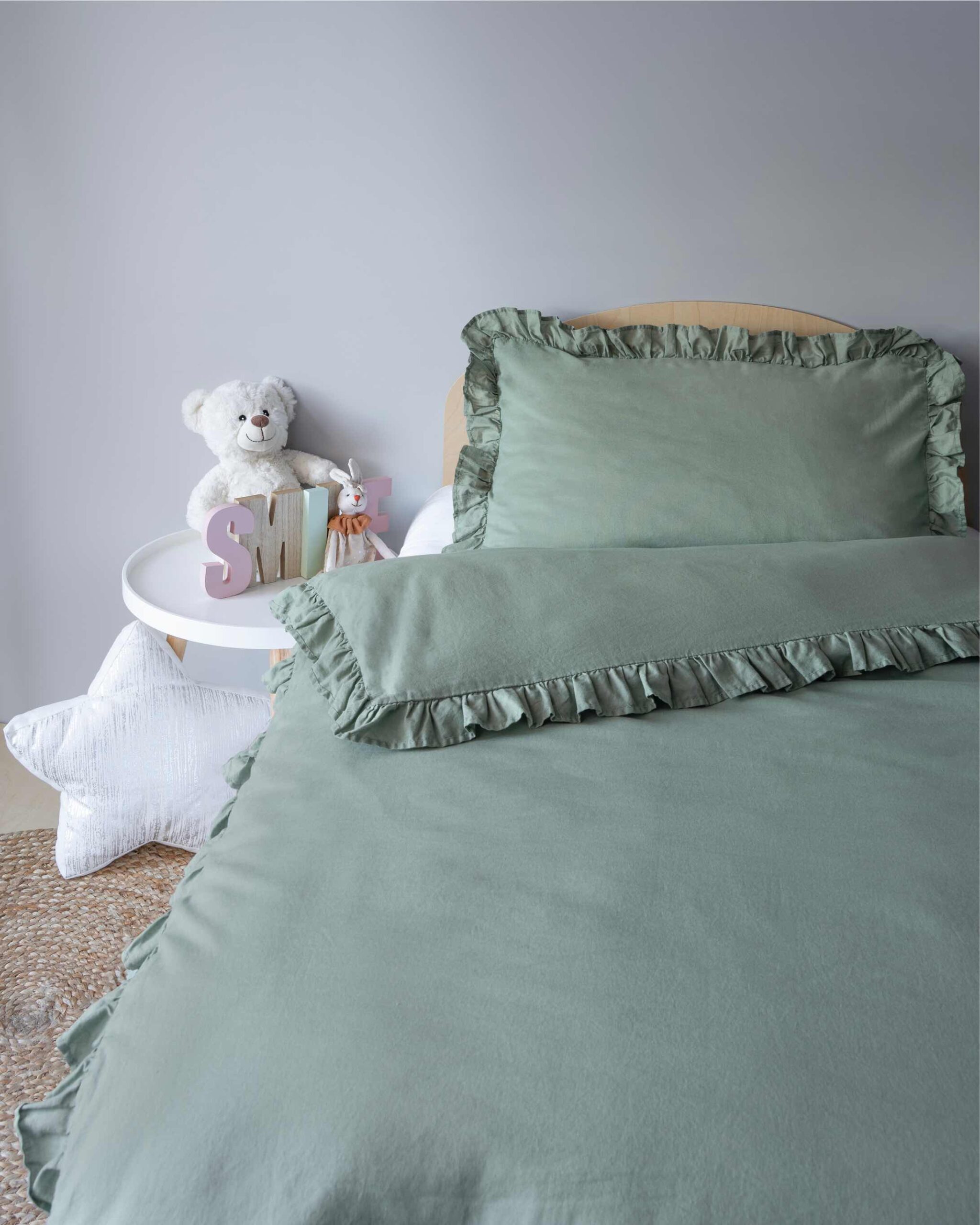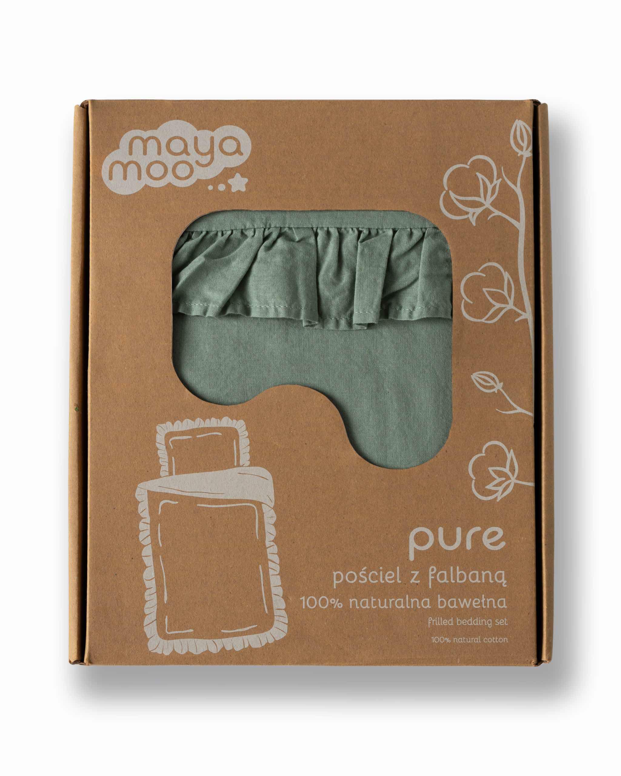 Pościel bawełniana 100×135 miętowa dziecięca jednobarwna z falbanką Mayamoo 35