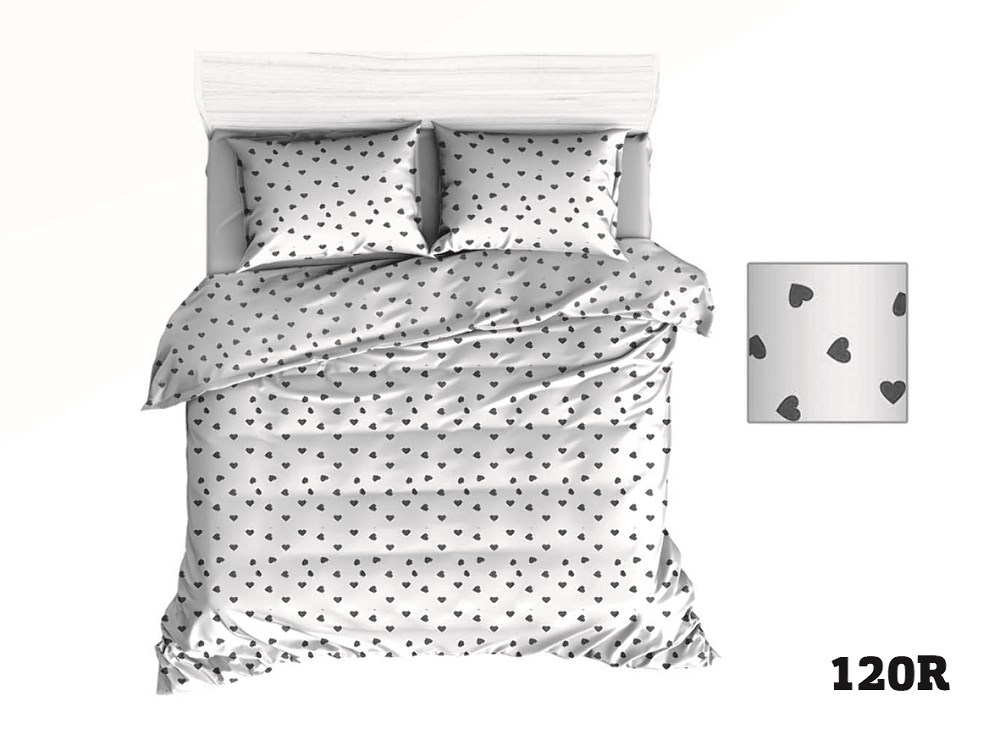 Pościel bawełniana 100×135 R120 biała serca serduszka szare 274D