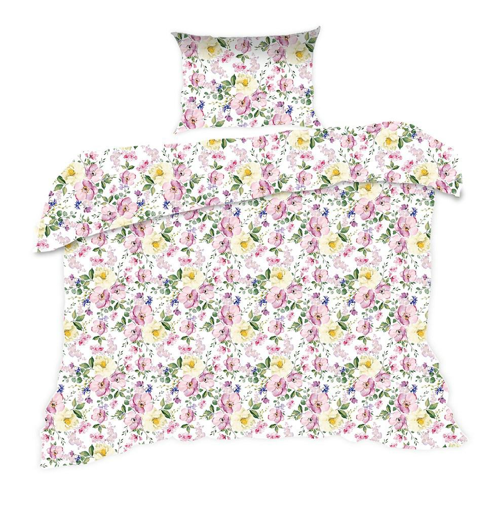 Pościel bawełniana 140×200 1139N biała łąka kwiatki liście Classic E24